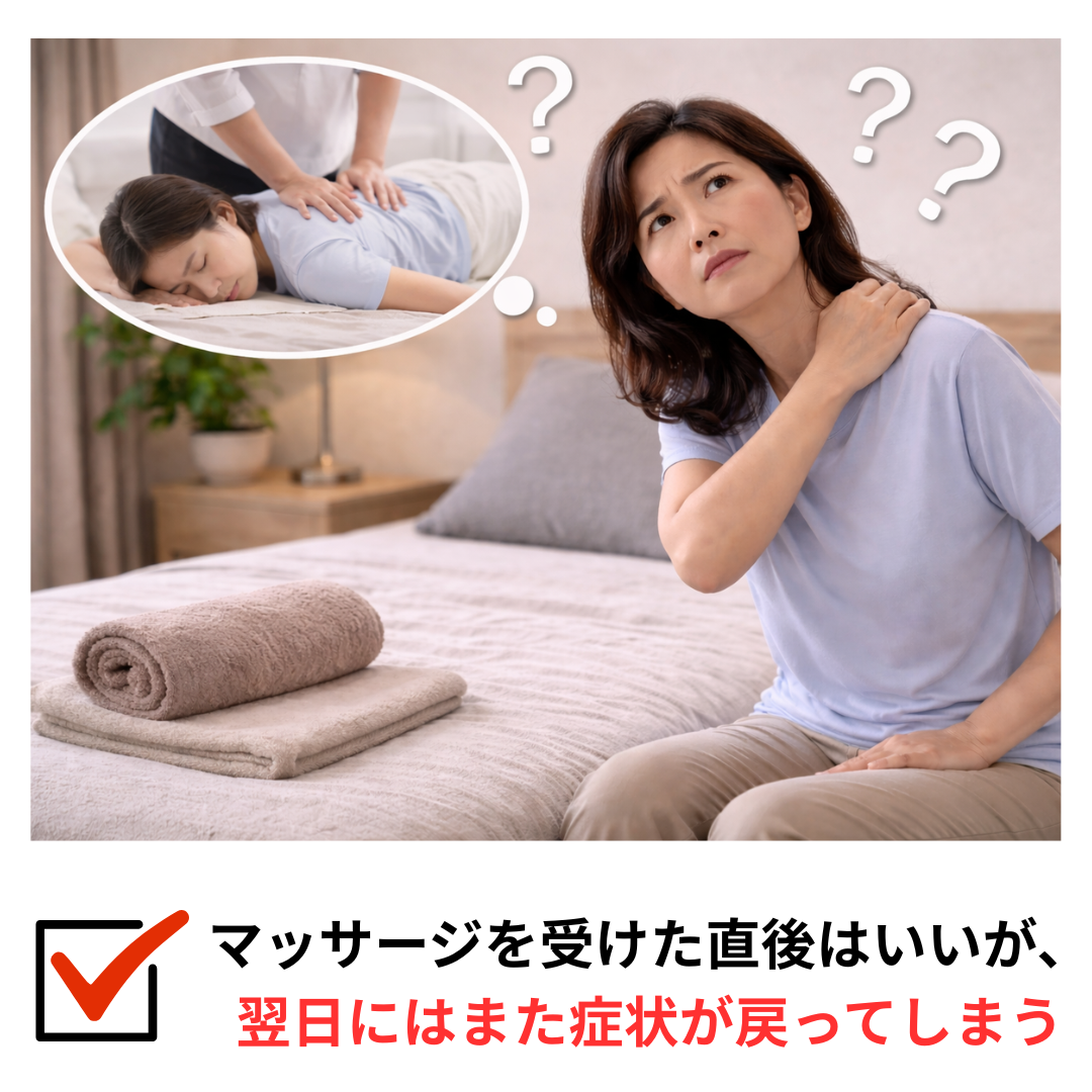 体のゆがみ、ハリ、痛みを長年感じていたが年齢のせいとしか思っていませんでした。