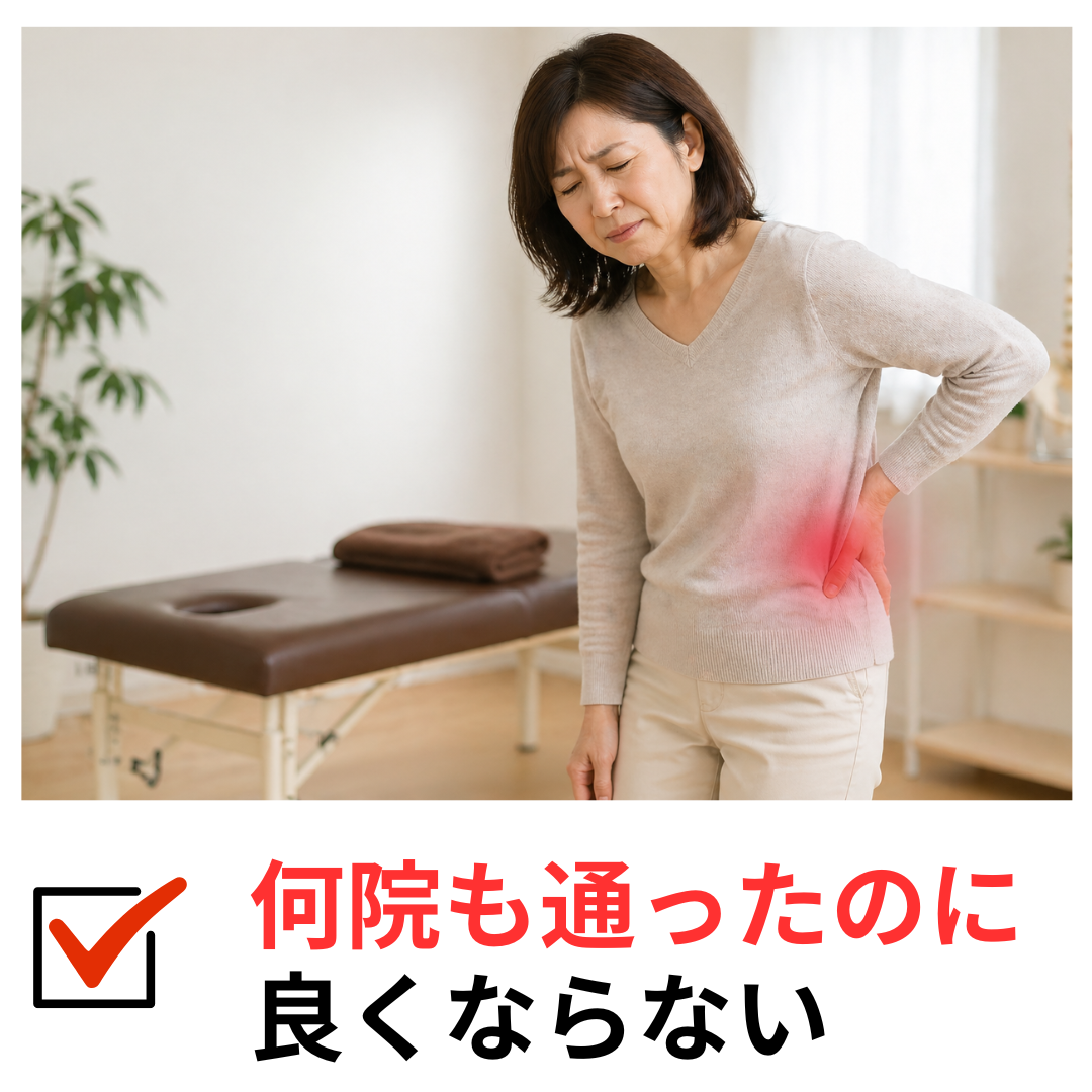 病院では注射と湿布だけでしたが、こちらでは時間をかけた丁寧な施術で、驚くほど体が楽になりました。